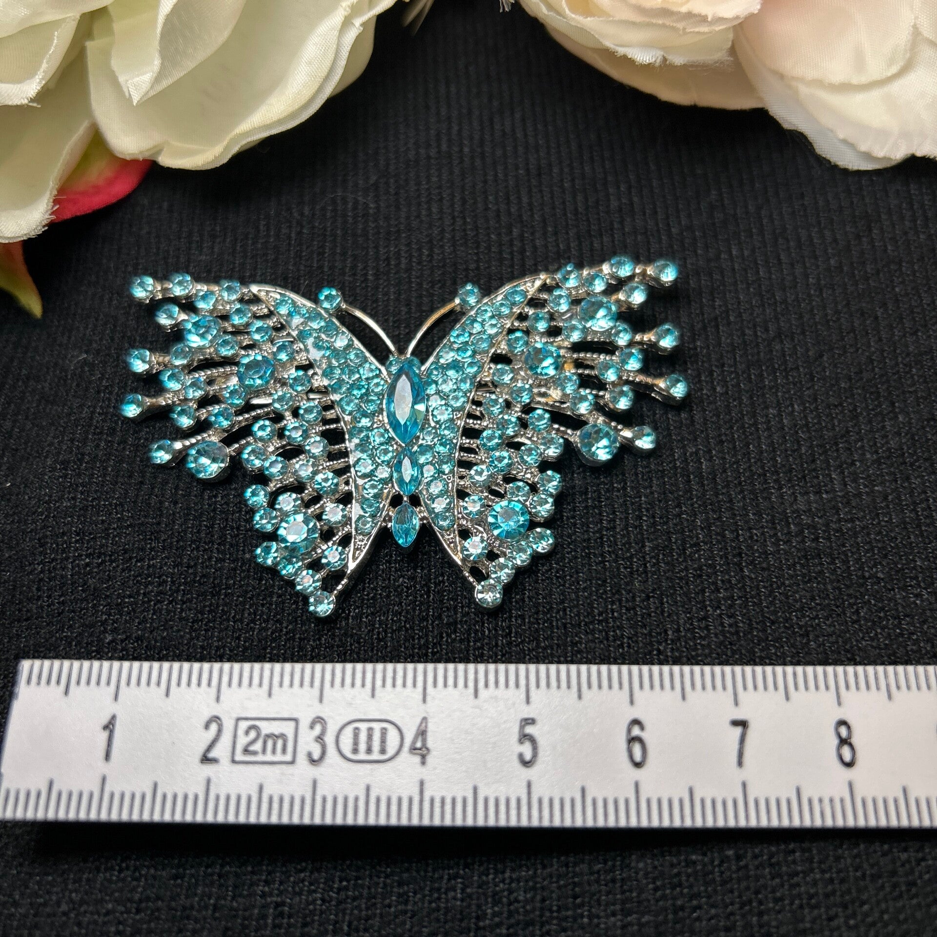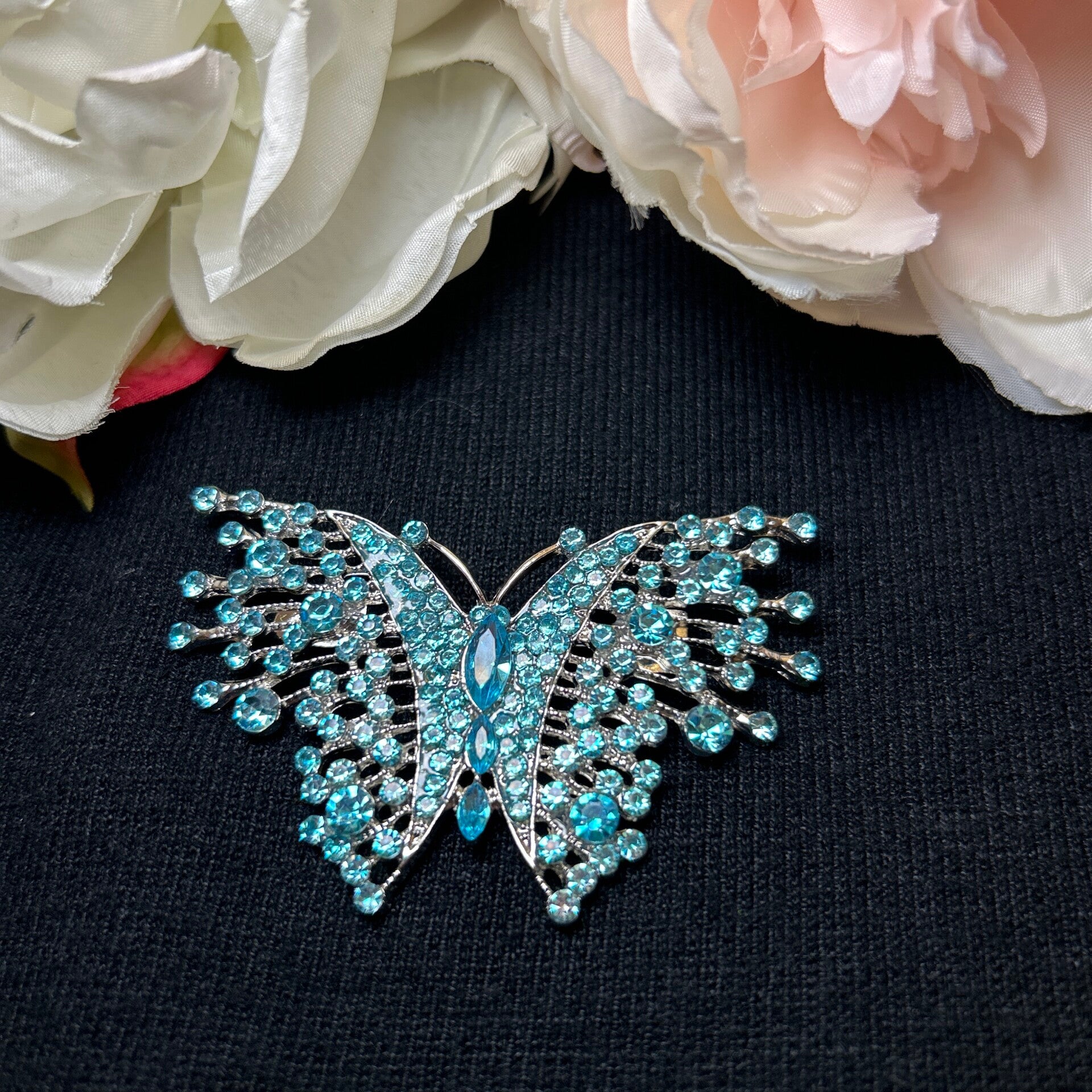 Delicate Blue rhinestone butterfly brooch